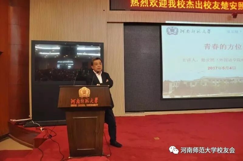 图为2017年楚安照参加第五期“五五四”校友大讲堂活动剪影