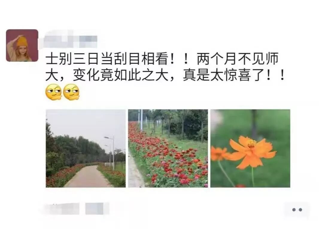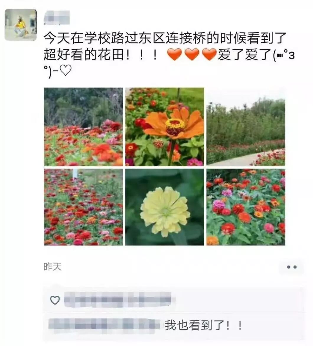 如此吸引人的拍照打卡圣地,当然可不止青梅君一个人发现哦~师大er 的眼睛可都是雪亮的!一时间,许多学子也将这片花海晒至朋友圈与更多人分享。