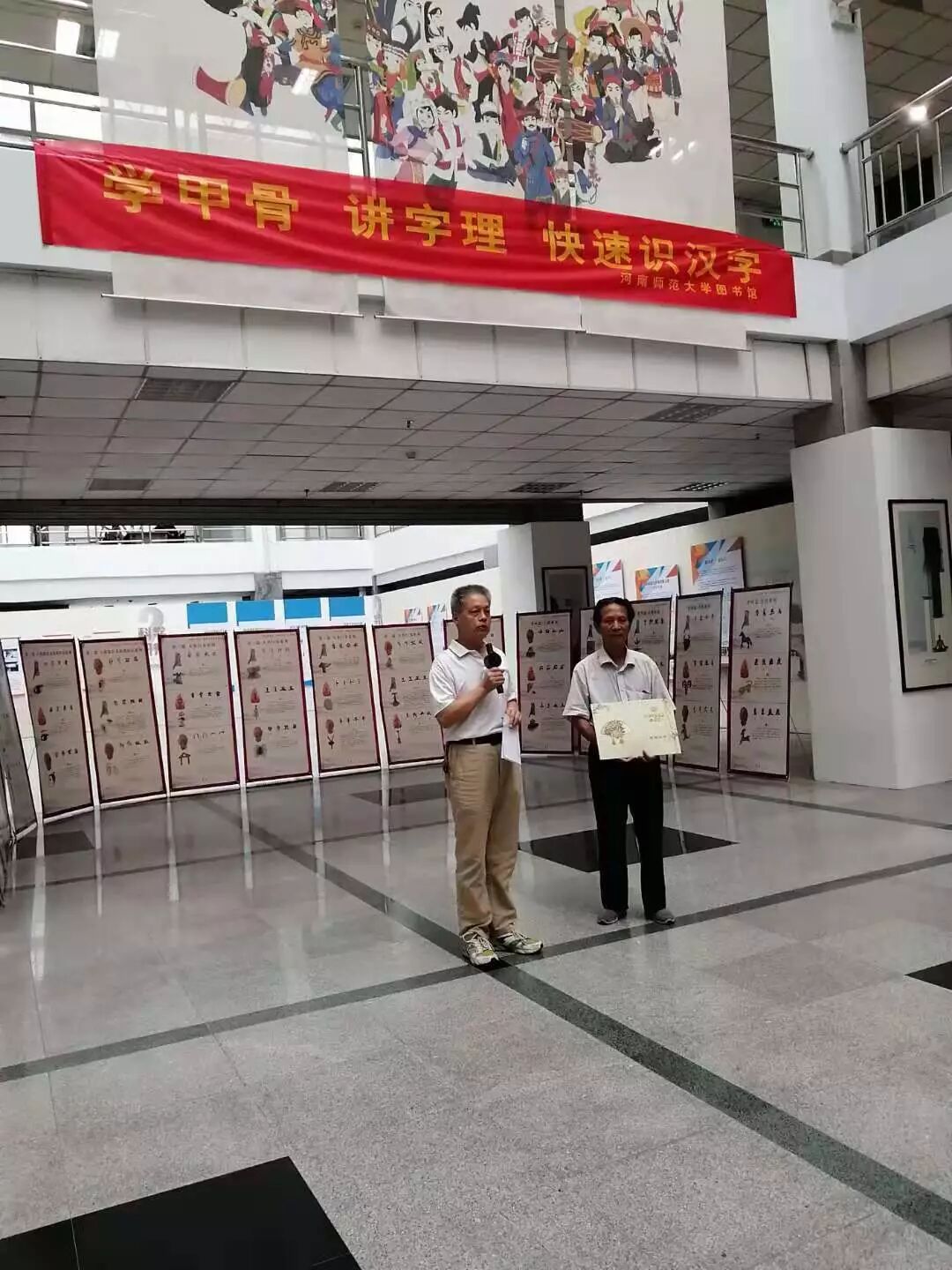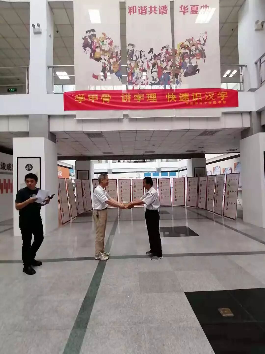 为纪念建国70周年、甲骨文发现120周年,我校图书馆于9月11日二楼大厅举办“学甲骨、讲字理、快速识汉字”图片展。中国汉字研究院首任院长姬克喜,图书馆馆长赵荣栓教授出席了开展仪式。仪式由胡玉文老师主持,部分师生代表参加了仪式。
