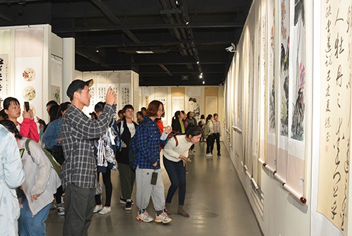 档案馆馆长、校教职工书画协会会长赵启才对本次书画展的筹备及展品情况做简要介绍。开幕式结束后,出席开幕式的领导、老师和同学们共同参观了展览。