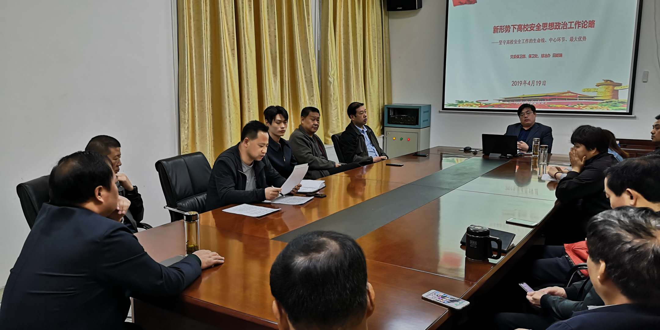 会上,党委保卫部副部长、保卫处副处长、综合治理办公室副主任田歧瑞,带着参加省直党校学习培训的成果,以扎实的理论功底和翔实的基本数据,为同志们作了《新形势下新形势下高校安全思想政治工作论略——坚守高校安全工作的生命线、中心环节、最大优势》的理论报告。这个报告为同志们提高做好学校安全管理和综合治理工作的重要性思想认识提供了基础,为全部(处室)工作人员坚守好学校安全管理工作的生命线,用求是的工作作风和扎实的工作业绩助力学校事业发展提供了遵循。