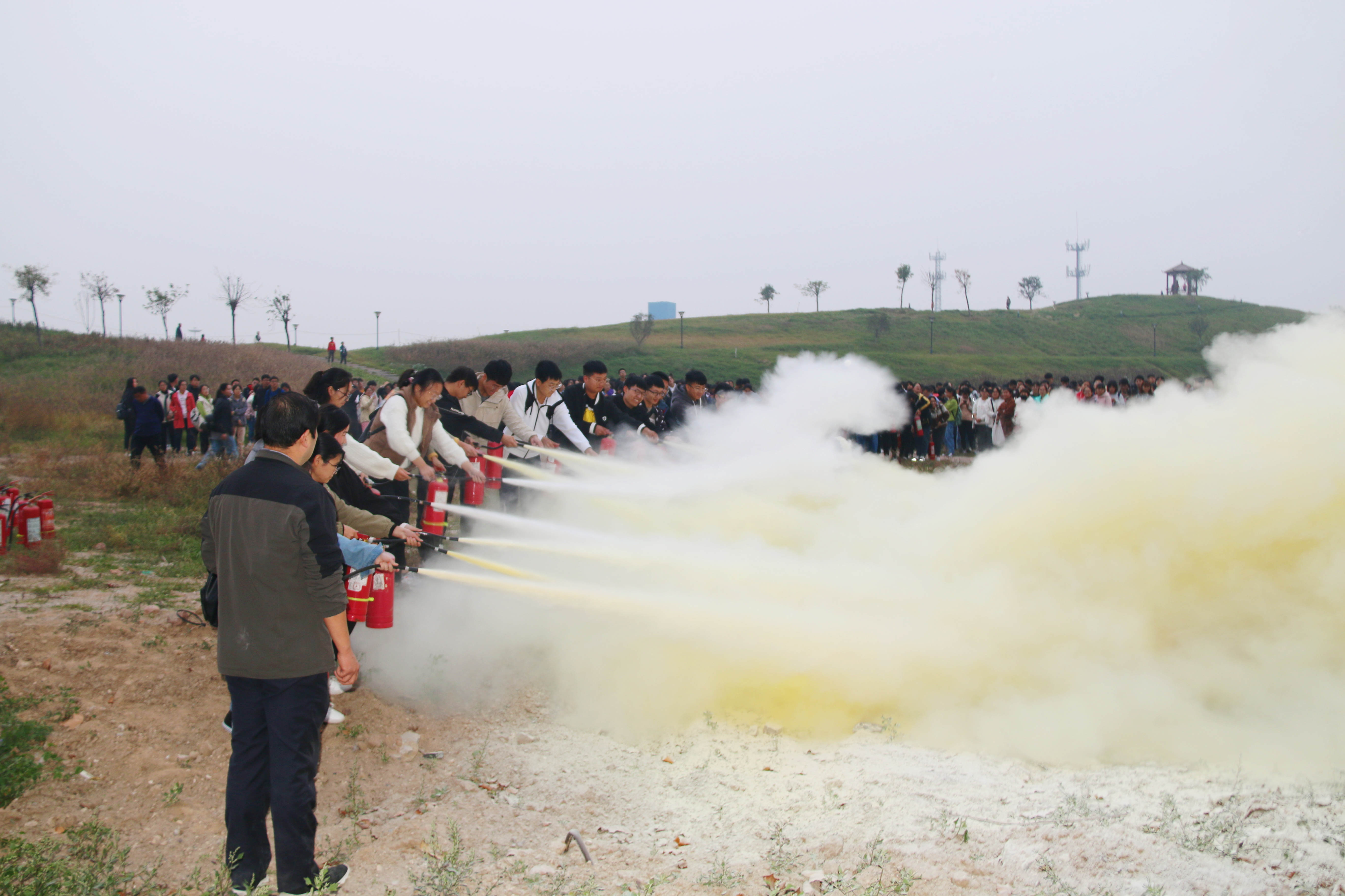 实操环节中,部分师生在保卫处相关工作人员的协调与指导下,积极拿起灭火器进行尝试,主动将培训内容应用于实践之中。现场活动氛围热烈,学生参与热情高涨。