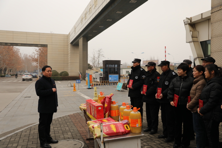 新年伊始,保卫部(处)、综合治理办公室领导班子成员宋卫平、杨海山带领公共安全科全体工作人员,对奋战在学校安全管理和综合治理工作一线的保安队员进行了慰问,并对年度考核优秀的保安队员颁发了荣誉证书和奖品。
