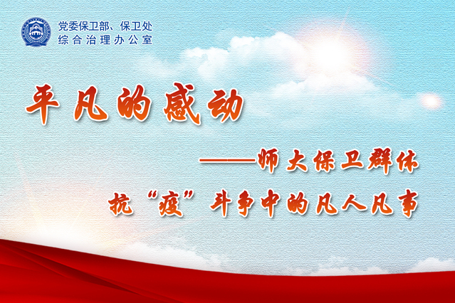 为了记录师大保卫战线干部职工战疫情、护平安,优秩序、保畅通工作过程中的点点滴滴,讲述师大保卫人在疫情防控过往中发生的凡人凡事,我们特收集编辑以“平凡的感动——师大保卫群体抗‘疫’斗争中的凡人凡事”为主题的往事小集,并以为纪念。