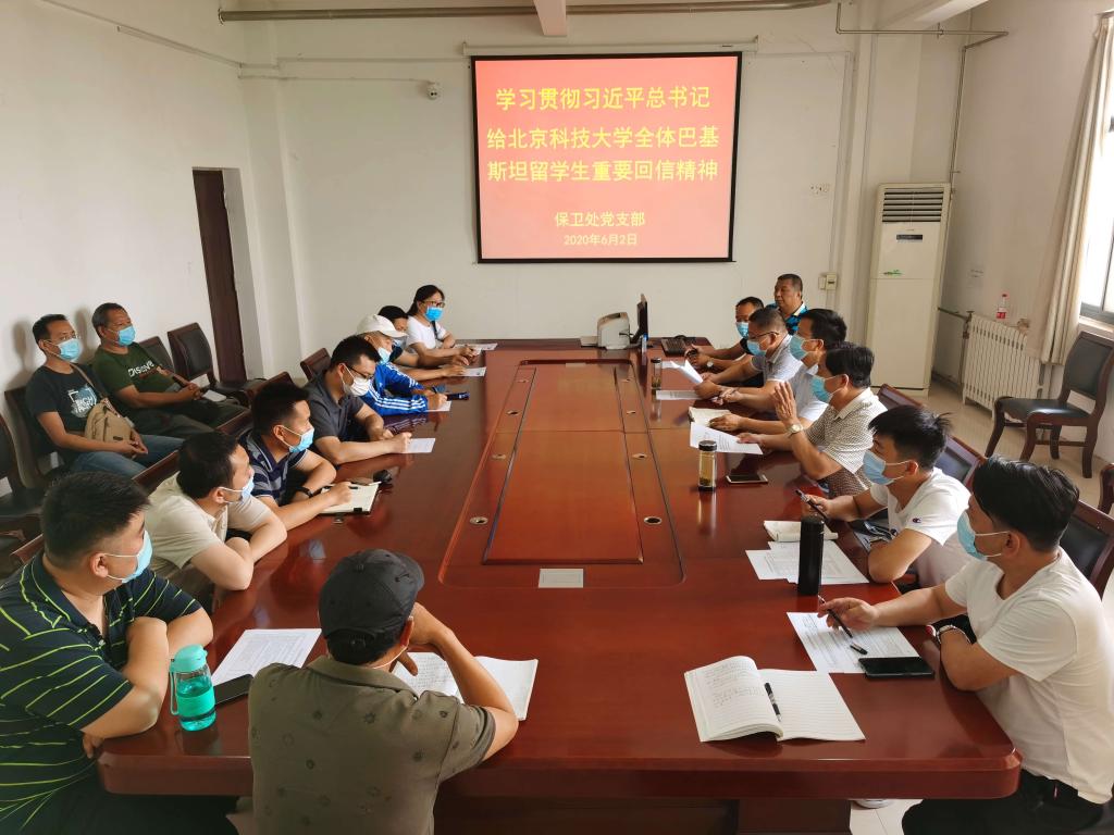 6月2日上午,致远楼508室,保卫处党支部干部职工学习了习近平主席给北京科技大学全体巴基斯坦留学生的回信。会议由处长张文成主持。