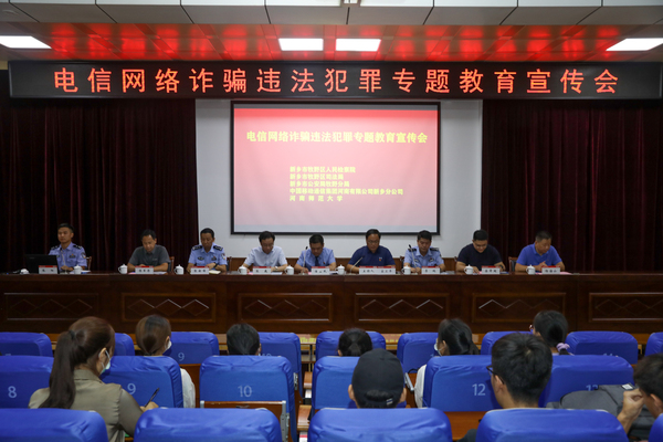 会上,潘益民、张巍先后讲话。潘益民指出,加强防范电信网络诈骗违法犯罪活动,必须动员全社会的力量,坚持关口前移,切实提高警惕,教育和引导广大人民群众争做知法普法的倡导者和守法用法的实践者,遇到疑似电信网络诈骗诱骗,坚持做到“三不一要”(不听、不信、不转账,要保存证据)。张巍指出,当前,电信网络诈骗新型违法犯罪活动处于高发期,特别是对于高校开学季来讲,更是犯罪分子紧盯的从事电信网络诈骗违法犯罪活动的窗口期,学校各职能部门一定要加强对师生的宣传教育引导,司法机关将为广大师生提供全方位的法律咨询和法律援助。牧野公安分局反电信诈骗大队教导员张新峰在会上指出,公安机关坚持打防结合以打为主,全面打击电信网络诈骗新型犯罪活动,坚决打掉违法犯罪分子的嚣张气焰,坚决保护好维护好广大人群众的财产安全和切身利益。新乡移动公司有关负责人向与会人员讲解了电信网络诈骗活动的几种主要类型,并向大家介绍了几种行之有效的防范措施。