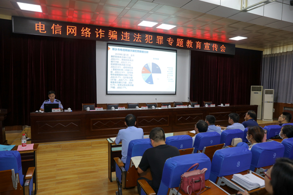 9月11日下午,我校电信网络诈骗违法犯罪专题教育宣传会在新五五四教室楼党校教室举行。新乡市牧野区检察院党组成员、副检察长潘益民,司法局党组书记、局长张巍等一行出席会议并讲话。保卫部(处)长、综合治理办公室主任宋卫平主持会议并提出工作要求。牧野公安分局东干道派出所所长李鹏,保卫部(处)、综合治理办公室领导班子成员、各学院(部)辅导员代表、学生代表200余人参加了会议。