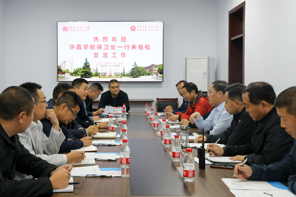 10月30日,许昌学院保卫处处长周银超、副处长马科一行8人来我校交流工作。保卫部(处)长、综合治理办公室主任宋卫平,副处长、综合治理办公室副主任陈军涛等在保卫部(处)、综合治理办公室会议室与周银超等一行进行了深入的工作交流。