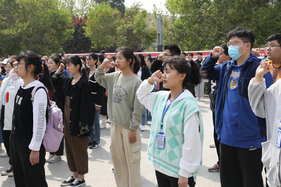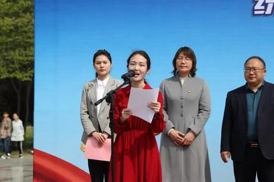 学生代表赵颖宣读倡议书,全体与会人员宣誓