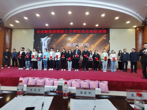宋卫平在颁奖后发表讲话。他首先对获奖同学表示祝贺,对组织者的精心筹划表示感谢。他指出,大学生安全关系到每个学生的健康成长,也关系到千家万户的美满幸福,更关系到全社会的和谐稳定,我们要以本次安全知识竞赛为契机,常抓不懈开展大学生安全教育工作,同时希望各位同学将学到的知识应用于日常生活中,筑牢大学生安全保障的铜墙铁壁。