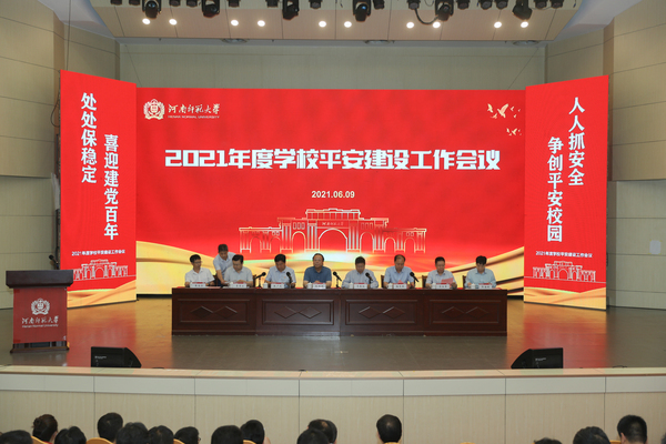 人人抓安全,争创平安校园;处处保稳定,喜迎建党百年。6月9日上午,学校2021年度平安建设工作会议在逸夫楼音乐厅召开。校党委书记赵国祥出席会议并讲话,校长常俊标主持。全体校领导,各教学单位书记、院(部)长、副书记、主管副院(部)长,各职能部门主要负责人、主管安全工作的副职,各学院(部)团委书记、辅导员、学生代表480余人参加会议。