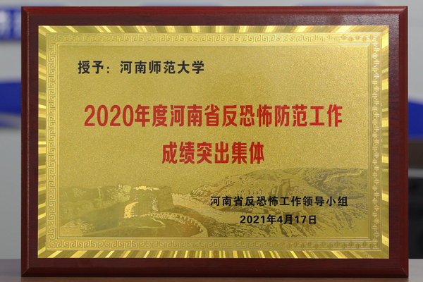 近日,河南省反恐怖工作领导小组印发《关于对2020年度全省反恐怖防范工作成绩突出集体和个人表扬的通报》,我校荣获2020年度全省反恐怖防范工作成绩突出集体荣誉称号,这是我校反恐怖防范工作继荣获2019年度全省反恐怖防范工作先进单位称号之后的又一重要荣誉。