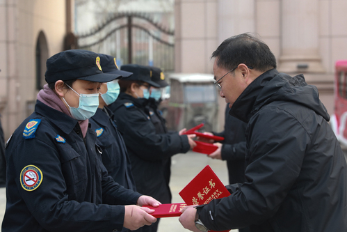 1月25日下午,党委保卫部、保卫处联合河南力盾保安服务有限责任公司,在西校区举行2021年度优秀保安队员颁奖活动。党委保卫部部长、保卫处处长宋卫平,保卫处副处长高玉臣,河南力盾保安服务有限责任公司豫北分公司运营经理陈志伟等,向获得奖励的年度优秀保安队员颁发荣誉证书和奖品。公共安全科、综合管理科、宣传教育科等部门同志参加活动。