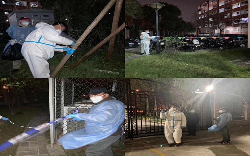伴随着不断变化的疫情形式,闵行校区的疫情防控精细化到因片区而异、因楼栋而异,保卫处需要对每个板块的管理要求了如指掌,发挥好“守门人”的重要作用。隔离段安装至今,保卫处党员干部每天带领着“突击队”在各个片区巡逻,查缺补漏,更科学地调整隔离段布局。白天化身建筑工人,夜晚打卡线上会议。已在校连续工作一月的同志们,本就缺乏休息时间,现在的休息时间更是每天只有四到五个小时,身心俱疲。但当任务和困难到来时,这支“突击队”的心声都是“不论时间,使命必达”。