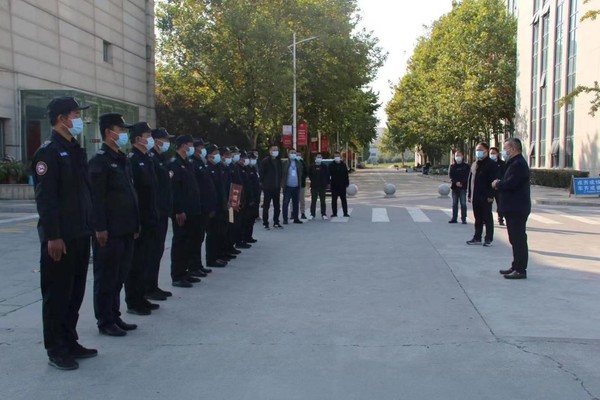 聂国兴首先代表校党委、校行政,对坚守在疫情防控一线的广大保安队员致以真诚的问候和衷心的感谢,对在近期学校疫情防控工作中表现突出的保安队员提出表扬并给予奖励。对广大保安队员在学校疫情防控和平安校园工作中的表现给予充分肯定,并提出四点要求:一是要全体保卫人员学习尚德林同志的敬业精神和执纪标准,在岗爱岗,扎实工作,严肃纪律,严格标准,在学校疫情防控这一特殊时期的工作岗位上贡献自己的应有力量。二是要在学校疫情防控工作中,努力克服厌战心理和为难情绪,始终坚守在第一线、奉献在第一线,守好守牢学校疫情防控入口关。三是要面对全市和学校疫情防控工作严峻形势,保卫战线全体干部职工一定要提高思想认识和政治站位,高标准执行学校疫情防控决策部署。四是要强化责任意识和岗位意识,以严之又严、实之又实、细之又细的工作状态,为筑牢学校疫情防控第一道防线再立新功。
