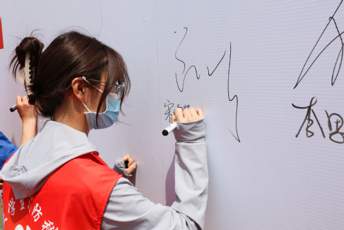 与会人员在签名墙签名响应倡议 |