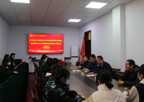 12月8日上午,2023年度119消防宣传月大学生消防科普获奖作品颁奖礼暨伟德官网下载苹果版大学生消防科普志愿服务队授旗仪式在党委保卫部、保卫处会议室成功举行。新乡市消防救援支队综合指导科科长赵金海,学校党委保卫部、保卫处综合管理科科长张海龙,宣传教育科科长闫居亭,获奖学生代表和大学生消防科普志愿服务队代表等20余人参加。活动由党委保卫部副部长、保卫处副处长潘振斌主持。