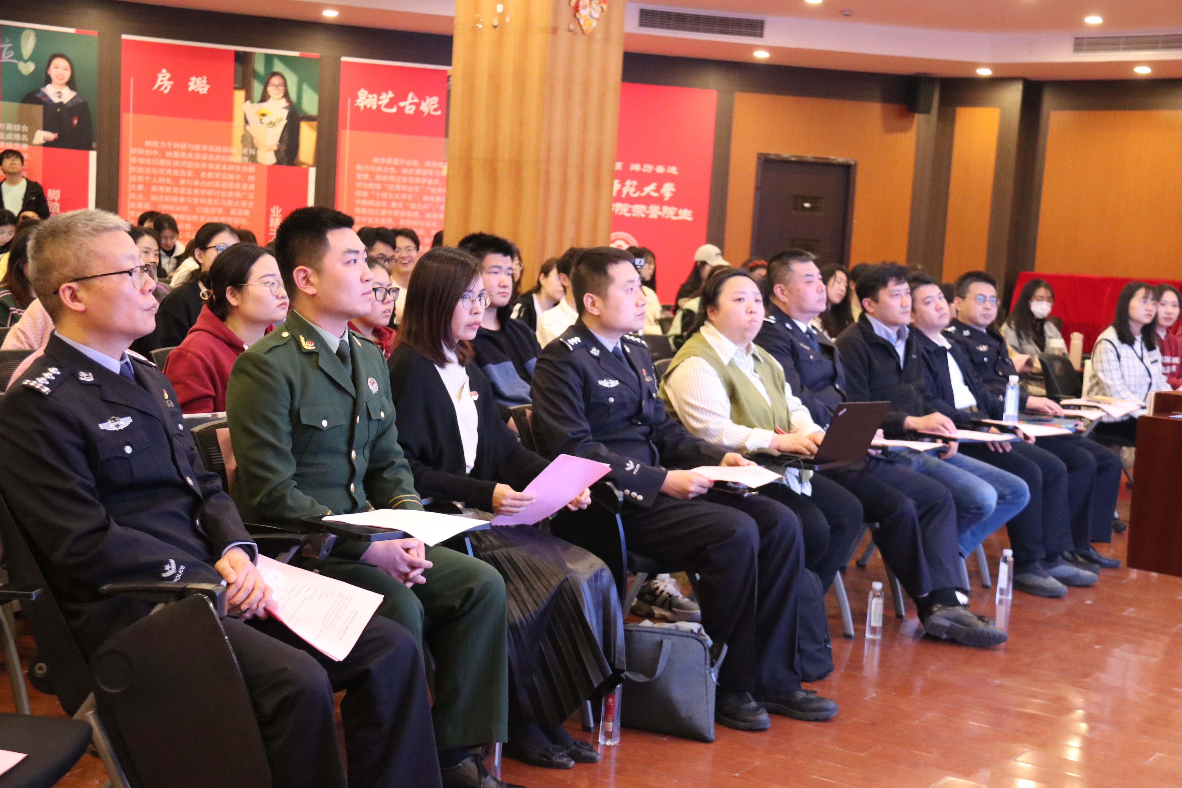 上海市公安局文保分局闵行高校派出所所长、党支部书记唐晓峰以“国家安全,你我共筑”为主题,从“我们身边的安全”这一细微之处切入,指出安全是一个系统,只有保护好自己的小安全,才能守护国家的大安全,并激励全体师生做到“严自律,尊法规,守底线”,担当起维护国家安全这一历史责任。