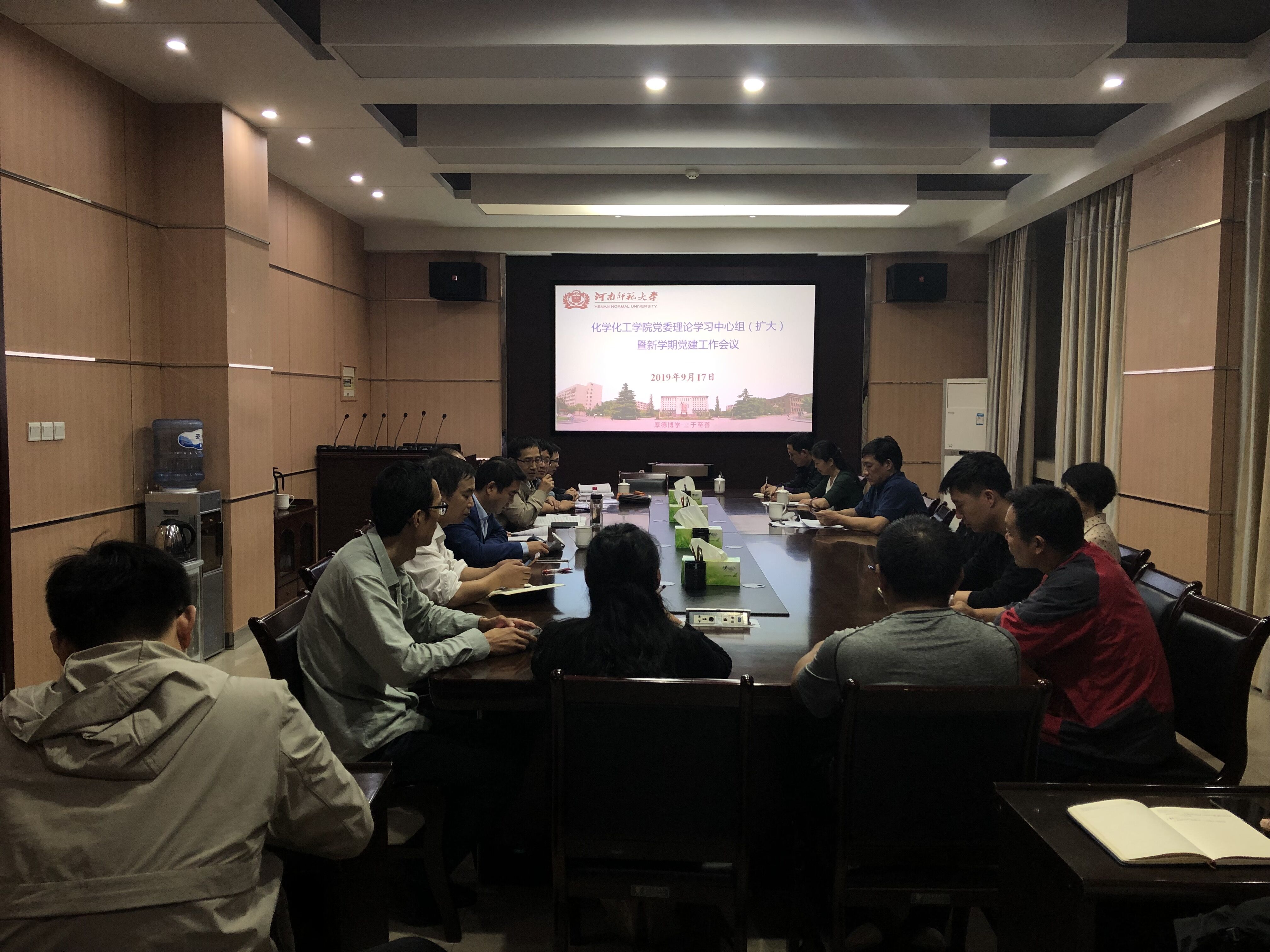 9月17日下午,化学化工学院党委理论学习中心组(扩大)暨新学期党建工作会议在化学北楼N114会议室举行。学院党政领导、党委委员、院办公室主任、团委副书记、各党支部书记参加了此次会议。会议由学院党委书记来俊军主持。
