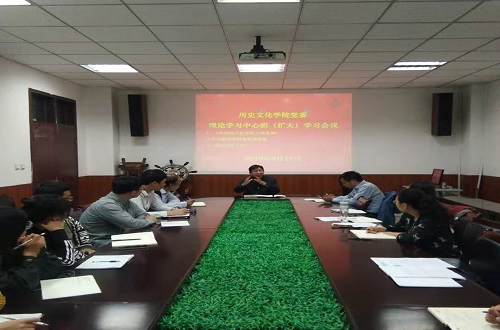 9月17日下午,历史文化学院党委理论学习中心组(扩大)学习会议在学院二楼会议室举行。学院党委委员、各支部书记、专兼职辅导员参加了会议。会议由学院党委书记巨永明主持。