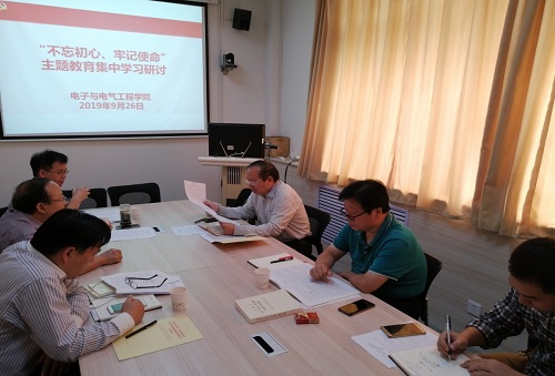 9月16日上午,电子与电气工程学院主题教育领导组集中学习并观看“不忘初心、牢记使命”主题教育纪录片《初心永恒》。