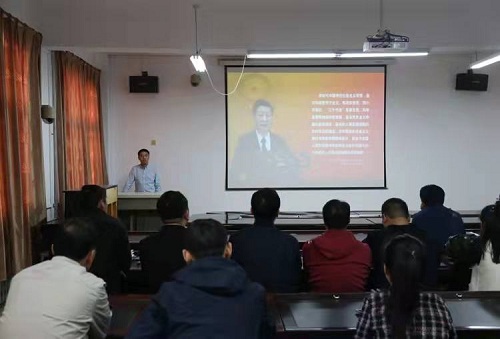 学院党委书记侯帅以《习近平新时代中国特色社会主义思想是党和国家必须长期坚持的指导思想》为题,分别从“立足时代之基、回答时代之问的科学理论”“系统完备的科学体系、特色鲜明的理论品格”“经过实践检验、富有实践伟力的强大武器”“21世纪马克思主义、当代中国马克思主义”等四个方面深入阐释习近平新时代中国特色社会主义思想。他指出,习近平新时代中国特色社会主义思想是马克思主义中国化最新成果,是党和人民实践经验和集体智慧的结晶,是中国精神的时代精华,是国家政治生活和社会生活的根本指针。侯帅希望参会成员在学习贯彻在这一思想的基础上,始终保持永不懈怠的革命精神和革命斗志,要在回望历史中始终坚守初心使命这一中国共产党人的精神坐标,要在奋力前行中使初心使命成为夺取新时代中国特色社会主义伟大胜利的力量源泉;要赓续红色基因、涵养家国情怀、把握历史机遇、勇担社会责任,把初心使命转化为锐意进取的精气神和勤奋务实的行动力,为推动学院高质量发展贡献力量。