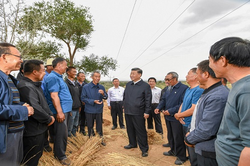 8月19日至22日,中共中央总书记、国家主席、中央军委主席习近平在甘肃考察。这是21日上午,习近平在武威市古浪县黄花滩生态移民区富民新村同村民亲切交谈。