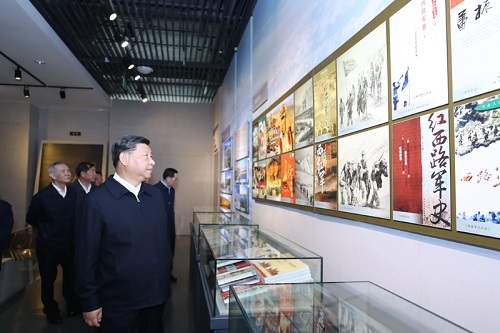 8月19日至22日,中共中央总书记、国家主席、中央军委主席习近平在甘肃考察。这是20日上午,习近平在张掖市高台县参观中国工农红军西路军纪念馆。