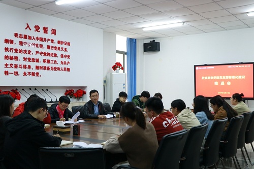 为加快学院党支部标准化建设进程,优化学院党支部设置,10月17日下午,社会事业学院在学院办公楼301会议室召开党支部标准化建设推进会。学院全体政工干部及学生党员40余人参与会议。