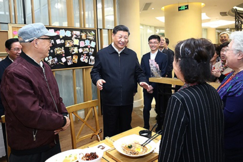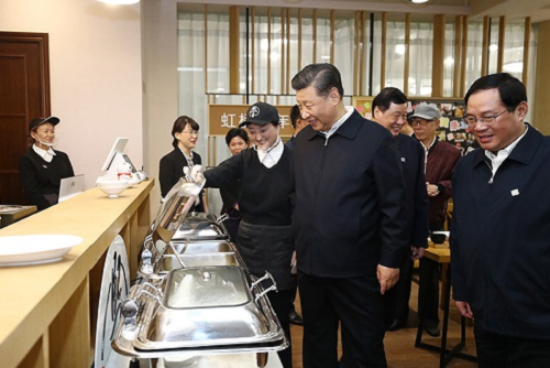 11月2日至3日,中共中央总书记、国家主席、中央军委主席习近平在上海考察。这是2日下午,习近平在长宁区虹桥街道古北市民中心老年助餐点考察,了解社区养老等便民服务情况。