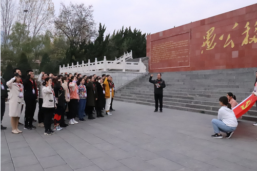爱国主义教育第二站——愚公移山精神的发源地王屋山。11月16日下午,学院各基层党支部前往济源市王屋山爱国主义教育基地。在文学院党委副书记高飞的带领下,全体党员于愚公移山的雕塑下重温入党誓词,重忆入党初心。为深入体会愚公移山精神,全体党员参与到“王屋山体验教学”的登山活动之中,在亲身体验中“发扬愚公精神,担当时代使命”。