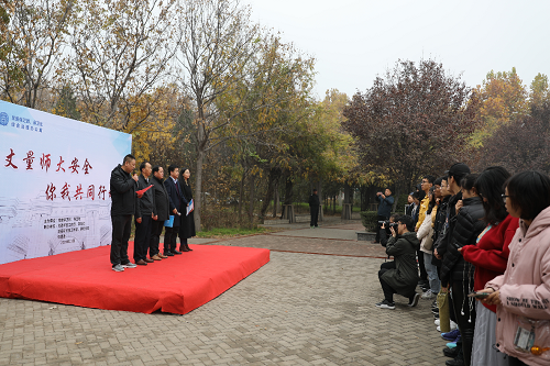 启动仪式上,杨海山简要介绍了组织开展本次主题安全教育活动的重要意义,并号召全校学生积极参与到活动中来,共同参与构筑更加安全、稳定、和谐、美丽的校园秩序和校园环境。党委学生工作部副部长、学生处副处长康海军宣读了《伟德官网下载苹果版“丈量师大安全、你我共同行动”主题安全教育活动实施细则》。党委保卫部部长、保卫处处长、综合治理办公室主任宋卫平宣布活动正式启动。