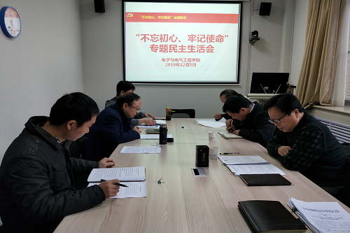 12月5日下午,电子与电气工程学院在院士工作站召开“不忘初心、牢记使命”专题民主生活会,校纪委相关负责人、学院处级领导干部参加会议。会议由学院党总支书记董建民主持。