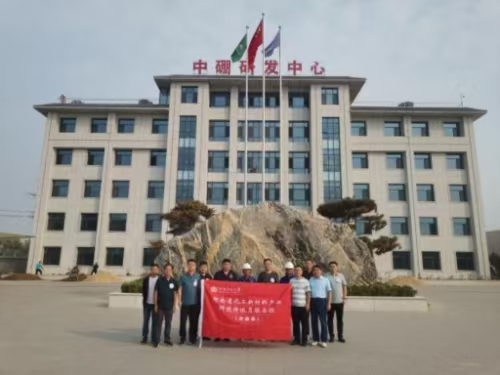 在河南中硼新材料有限公司调研,技术人员介绍了企业的生产状况和存在的技术问题,在中硼研发中心并与服务团专家进行了深入交流。