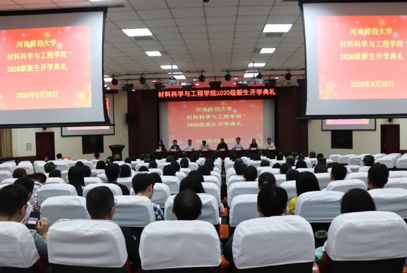 9月28日晚,材料科学与工程学院在物理北楼报告厅举行2020级新生开学典礼。学院党总支书记薛万新、院长高书燕、全体专任教师、班主任、辅导员以及2020级全体本科生、研究生新生参加典礼。会议由薛万新主持。