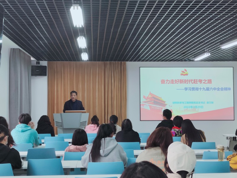 薛万新以“奋力走好新时代赶考之路”为主题,以中共中央办公厅日前印发的《关于推动党史学习教育常态化长效化的意见》为切入,带领学生进一步学习了党的十九届六中全会精神,加深了对《关于党的百年奋斗重大成就和历史经验的决议》的理解。结合疫情防控的“中国之治”、冬奥会的成功举办,薛万新指出,实践证明中国共产党始终走在时代前列,始终是全国人民的主心骨,中国共产党领导是中国特色社会主义最本质的特征,是中国特色社会主义制度的最大优势。薛万新要求学生,要提高政治站位,坚定理想信念,做到虔诚而执着、至信而深厚。锤炼品德修为,锻造过硬本领,敢攀能攀高峰,以优异成绩报效祖国、服务人民、奉献社会。