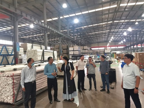 在新乡爱康建材有限公司,总经理孟建立对产业现状、企业概况、人才及技术需求等方面进行了介绍,表示希望双方加强沟通、实现校企融合,充分开发双方优势,在人才培养及相关技术研发方面实现合作共赢。万运京介绍了学院情况,期望能够扩展毕业生就业渠道。高书燕希望把公司需求与学院科学研究、人才培养、高质量就业有机融合,积极探索产学研用新模式,并诚邀企业专家能走进校园,为学生有针对性开展创新创业教育,增强学生的专业归属感和认同感。最后,凤泉区科工信局相关负责人肯定了校企深度合作的人才培养模式,表示政府将在高校科研与企业生产之间充分发挥桥梁纽带作用。