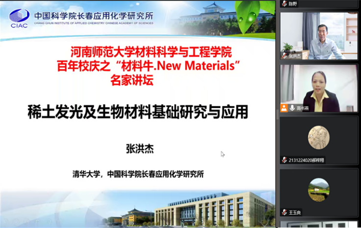12月6日,应材料科学与工程学院邀请,中国科学院院士、无机化学家张洪杰教授做客我校百年校庆之“材料牛·New Materials”名家讲坛,作题为“稀土发光及生物材料的基础研究与应用”的线上学术报告,校党委常委、纪委书记王玉良,相关专业教师和学生200余人参加了此次报告。报告会由学院院长高书燕教授主持。