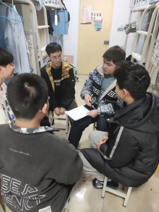 本次活动分为导入阶段、转换阶段、工作阶段、总结阶段四个阶段。在导入阶段以“大风吹”的活动形式进行,营造欢快、愉悦的氛围,调动宿舍成员的积极性,让每一位宿舍成员参与其中。在转换阶段以“影响最大的三件事”活动进行,宿舍成员之间袒露心声,表达情绪,思考启发。在工作阶段中,宿舍成员制定学期计划、合理安排时间。在总结阶段中,宿舍成员之间积极表达自己的活动感受,并拍摄“全家福”。