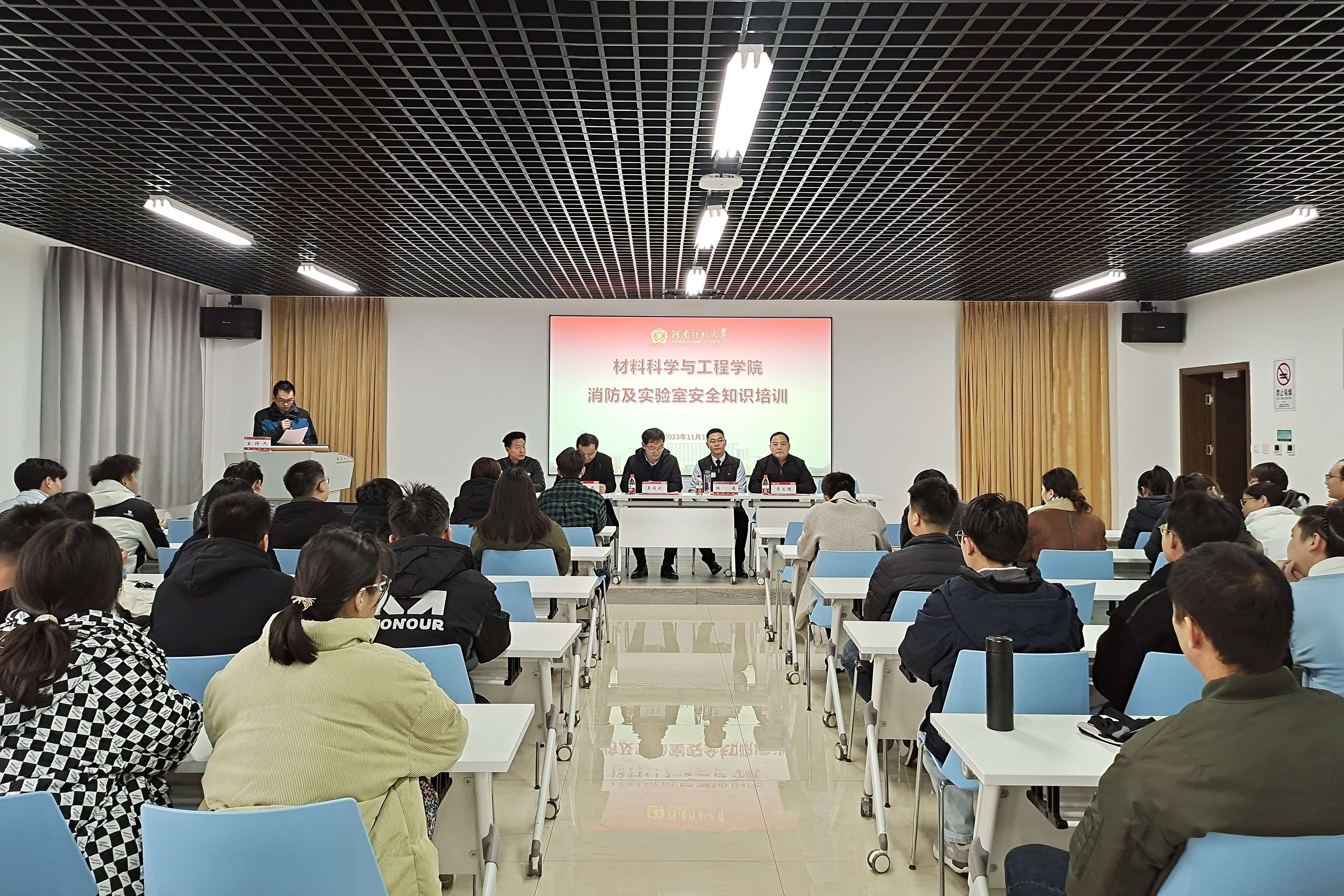 为进一步提升广大师生的消防安全素质和逃生自救能力,切实加强实验室安全管理,11月15日下午,材料科学与工程学院邀请河南省消防协会对全体教职工、本科生和研究生开展消防及实验室安全知识培训。学院实验室安全工作领导小组成员及校保卫处消防科蔡鹏出席活动。