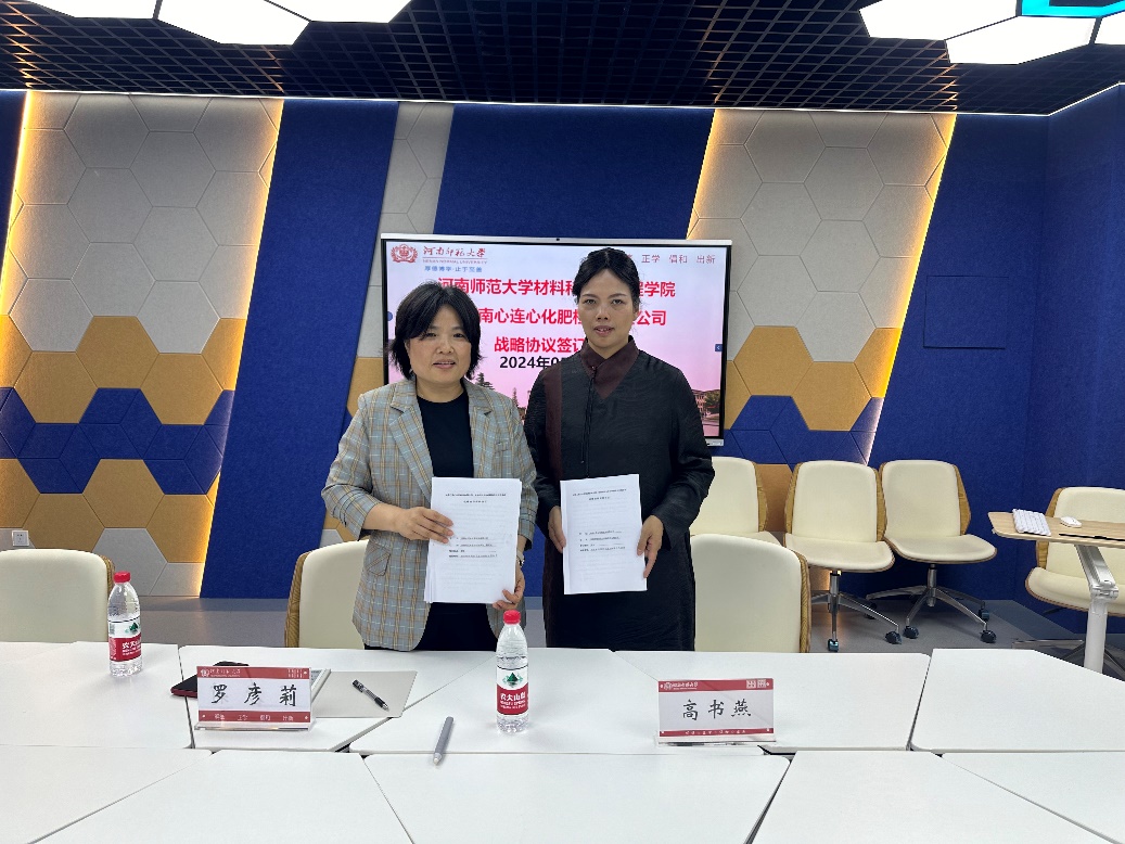 5月7日下午,材料科学与工程学院与河南心连心化肥检测有限公司战略合作框架协议签订仪式在校东区实训楼1004室举行。河南心连心化肥检测有限公司技术负责人罗彦莉与材料科学与工程相关领导出席会议,会议由院长高书燕主持。