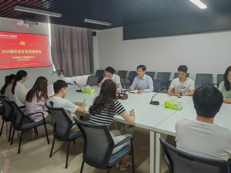 5月29日上午,材料科学与工程学院在实训楼1115会议室举行了2024届毕业生党员座谈会。院党总支书记吴耀武出席会议,会议由院党总支组织员吴呈珂主持。