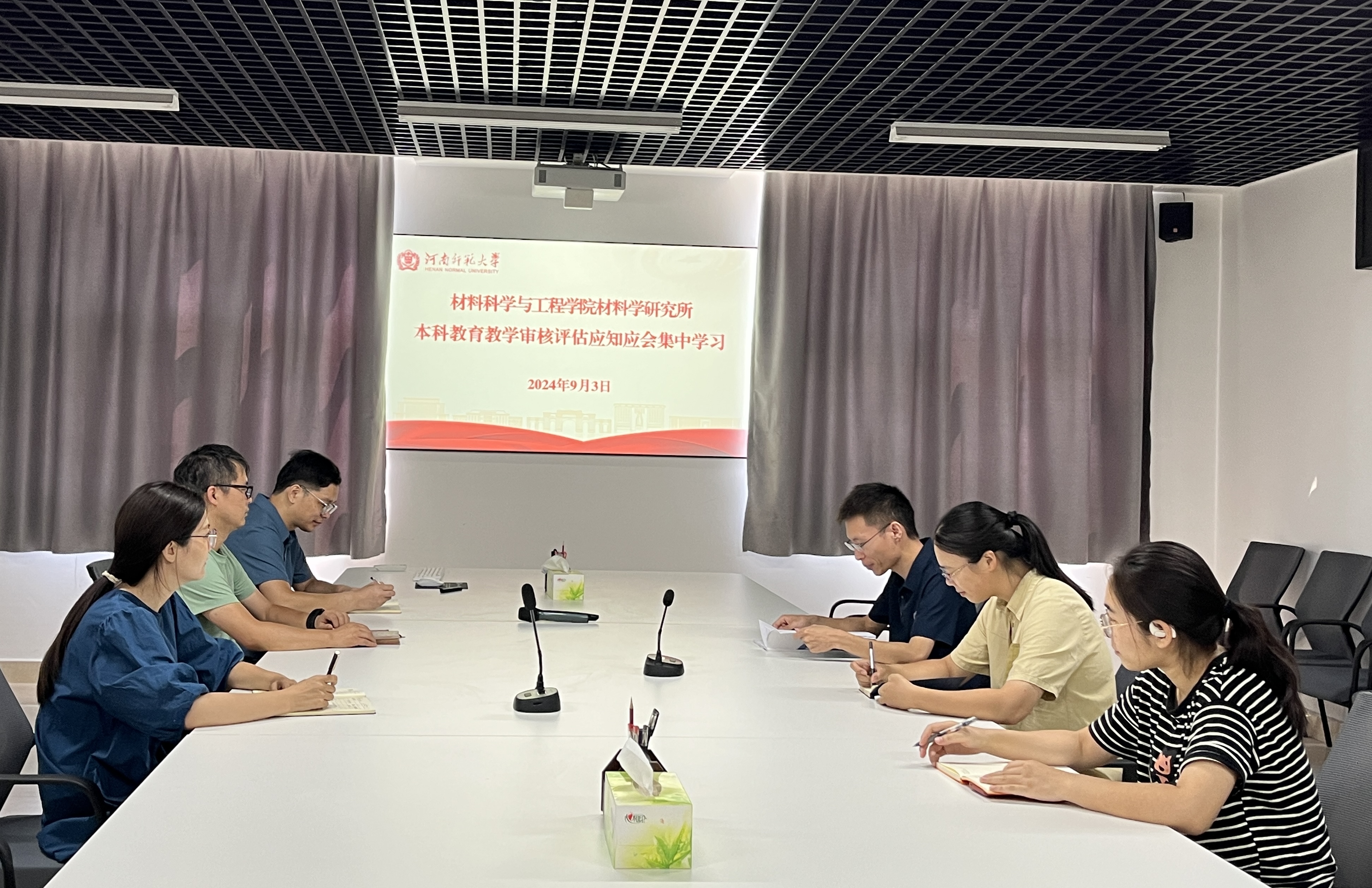 202493日下午,材料科学与工程学院在综合实训楼1113会议室召开本科教育教学审核评估应知应会集中学习会。学院领导班子和全体教师参加学习,会议由副院长李文胜主持。