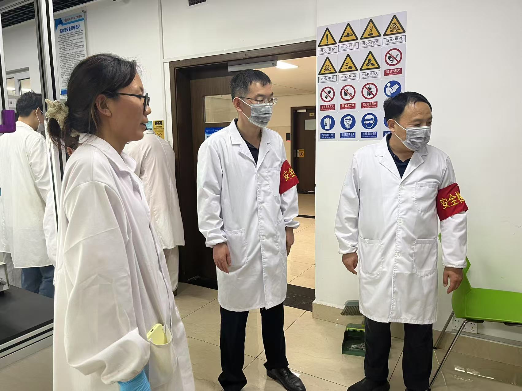 本次检查围绕学校前期安全检查发现的隐患整改情况,重点聚焦消防安全设施、实验人员个体防护、化学试剂及危化品管理、仪器设备使用等关键环节,对全院各场所进行了细致排查。检查过程中发现,学院消防及实验室安全形势持续稳定好转,但仍存在安全隐患,如存在烘箱散热空间不足、使用破损玻璃器皿、未严格落实危化品“双人双锁”管理制度等。检查组对排查出的安全隐患建立台账,并及时通报相关负责人立行立改。