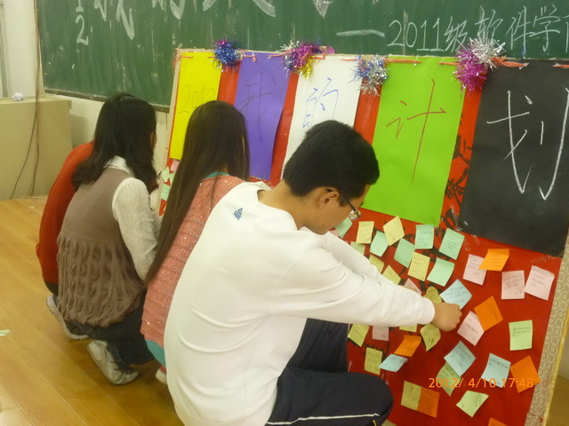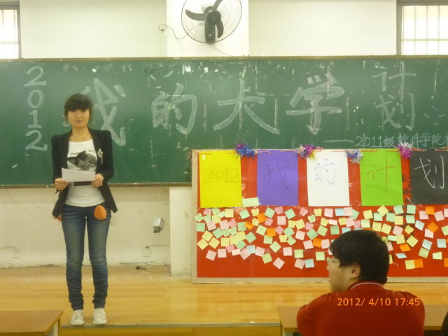 在本次主题班会中,祁菲老师通过“回望昨天”、“把握今天”、“展望明天”三个主旋律细致而又深刻的对同学们应该如何度过大学时光进行了引导。活动伊始,同学们畅所欲言,一同回忆着大学以来的点点滴滴,无论是在学习、生活还是工作方面,交流的过程使同学们发现了自己的不足,汲取了别人的优点,受益匪浅。紧接着同学们分小组讨论该如何度过大学,如何能够有效的把握现在的时光,大家你一言我一语使得活动现场氛围高涨。活动结尾,同学们写下了自己的心愿目标卡,有的同学希望在两年内考过六级、有的同学决定每周读完一本书籍、还有的同学期待取得更好的专业成绩等等,最后在辅导员的带领下,同学们纷纷将自己的心愿目标卡贴在“2012我的计划”板块上。