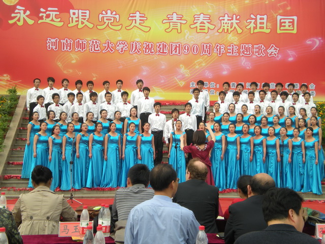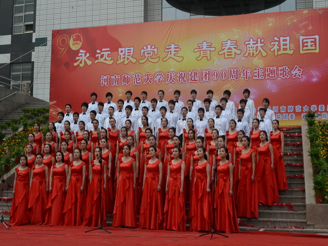 4月21日下午,“永远跟党走,青春献祖国”纪念建团90周年主题歌会在我校图书馆前广场举行。我院学生歌咏队在比赛中表现良好,获得了三等奖的好成绩。