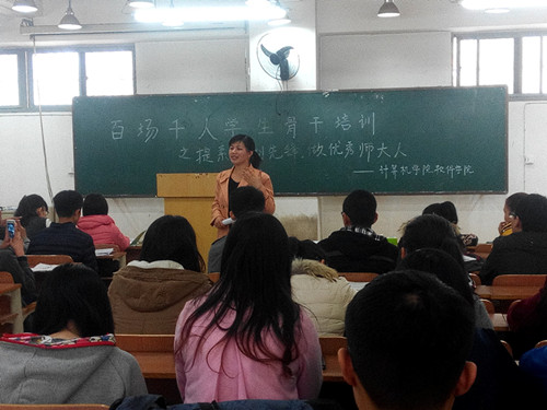 3月26日中午1:00,我院在113会议室举行“百场千人学生干部培训”第二场活动——“提素质,创先锋,做优秀师大人”。本次活动主讲人是院团委负责老师赵娜,院级学生干部骨干、2013级、2014级各班班长和团支书参加。