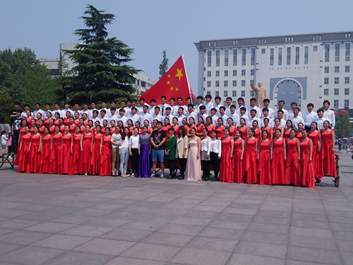 传承爱国志,青春献祖国。4月25日上午八点半,由校团委主办,音乐舞蹈学院团委、生命科学学院团委承办的纪念抗日战争胜利70周年主题歌会在图书馆前举行。我院代表队一百余名学生参加了此次比赛。