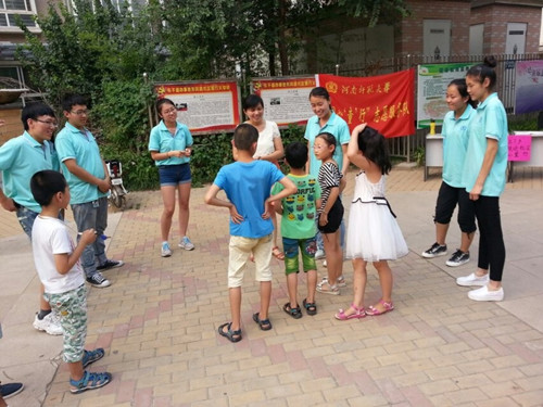 康桥名苑的居委会很热情,给我们提供了桌椅和电源,在居委会的帮助下,队员们做了很好的宣传,吸引了很多家长和小孩子。队员们在接下来的一天里和小朋友们一起玩游戏、聊天。队员们了解到小孩子的内心是很简单、纯真的,他们的愿望往往很小很小。虽然他们有时候很顽皮,但也很害羞,他们渴望得到关怀和帮助。小区的居民们心地很善良,看我们热的满头大汗还给给我们送来了热水和西瓜,对我们的活动进行了表扬和鼓励,队员们的心里暖暖的。