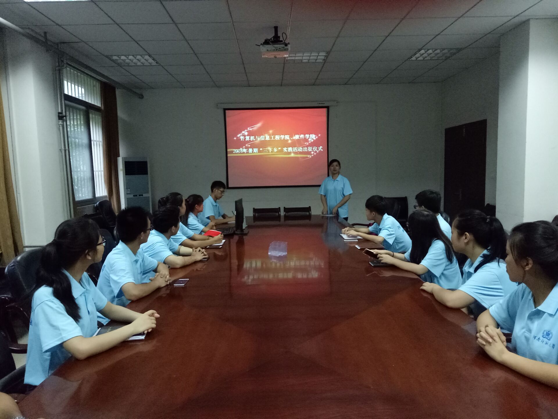 青春建功“十三五”,携手共筑中国梦。2016年7月11日下午5:30,学院2016年暑期“三下乡”社会实践活动出征仪式在院103会议室顺利召开。经校团委批准,由我院负责组织开展的“电脑维修与知识普及志愿服务队”全体队员及指导教师赵娜参加了仪式。出征仪式由赵娜主持。